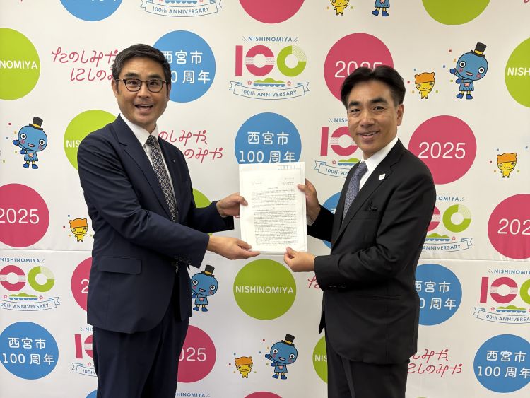 西宮市私立幼稚園連合会では、西宮市役所を訪問し、石井登志郎市長へ「予算要望書」を手渡しました。